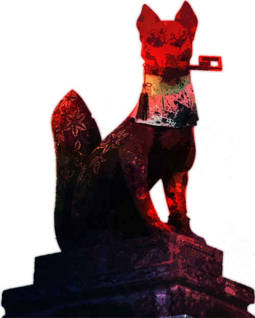 上部の画像はその神社にある御稲荷さんをベースに加工したものです。狐様がこっちを見ていらっしゃる。